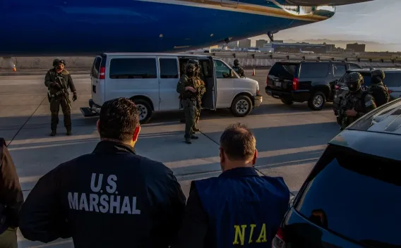 தஹாவூர் ஹுசியன் ராணா நாடு கடத்தப்பட்ட ஒரு நாளுக்குப் பிறகு, 26/11 மும்பை பயங்கரவாதத் தாக்குதல் குற்றவாளிகள் தேசிய புலனாய்வு முகமை (NIA) அதிகாரிகளிடம் ஒப்படைக்கப்பட்ட முதல் புகைப்படங்களை அமெரிக்கா பகிர்ந்து கொண்டது. தஹாவூர் ராணாவின் இடுப்பு மற்றும் கால்களில் சங்கிலியால் பிணைக்கப்பட்டு, அமெரிக்க மார்ஷல்களால் சூழப்பட்டிருப்பதை படங்கள் காட்டுகின்றன, அவர் முறையாக லாஸ் ஏஞ்சல்ஸில் உள்ள இந்திய அதிகாரிகளிடம் ஒப்படைக்கப்படுகிறார். இந்தப் படங்கள் அமெரிக்க நீதித்துறையால் பகிரப்பட்டன.