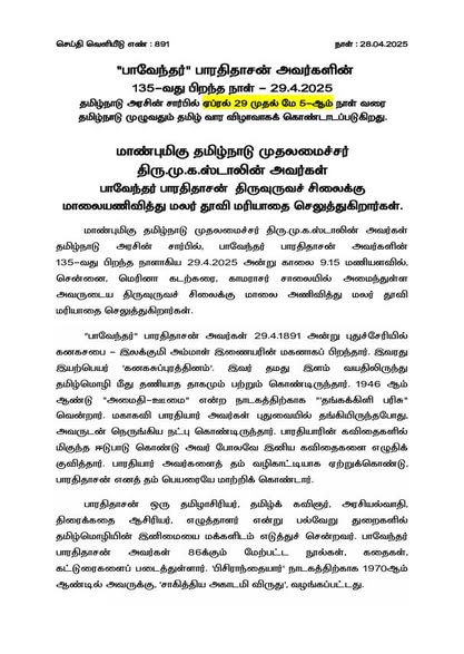 “பாவேந்தர் பாரதிதாசன்” அவர்களின் 135-வது பிறந்த நாள்!