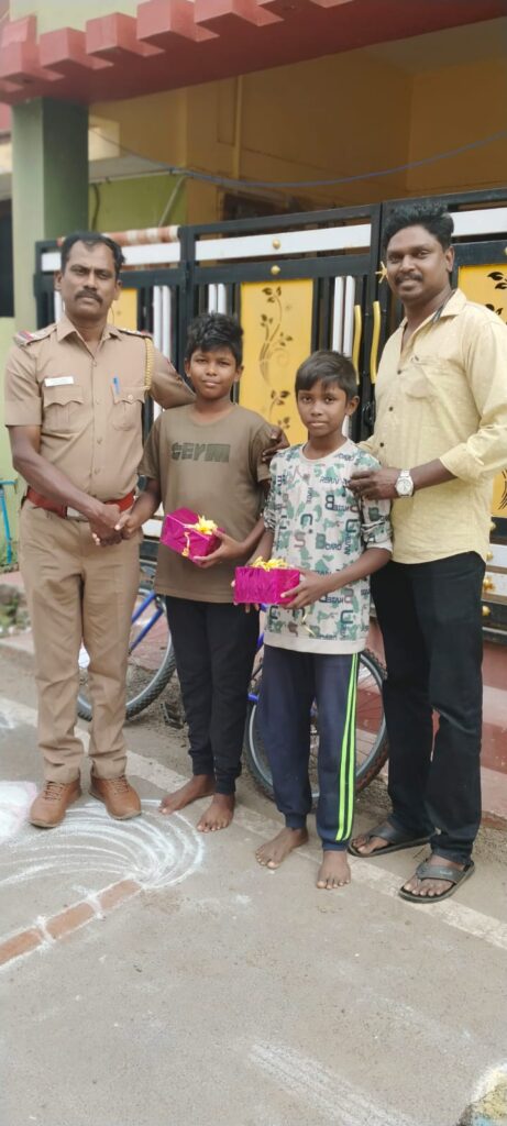 மதுரை கூடல் புதூர் காவல் நிலைய துணை ஆய்வாளர் திரு.சோமசுந்தரம் அவர்கள், இந்த சகோதரர்களின் நேர்மையை வெகுவாக பாராட்டி பரிசும் அளித்தார்.