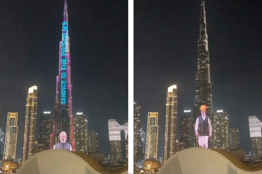 துபாயின் புகழ்பெற்ற வானளாவிய கட்டிடம் பிரதமர் மோடியின் பல படங்களால் அலங்கரிக்கப்பட்டு, அவற்றுடன் “பிறந்தநாள் வாழ்த்துக்கள்,” “75 ஆண்டுகள்,” “சேவையே தீர்மானம்,” மற்றும் “இந்தியா முதலில் உத்வேகம்” உள்ளிட்ட செய்தி மற்றும் படங்களுடன் ஜொலித்தது. இந்த அற்புதமான காட்சி துபாயில் உள்ள பார்வையாளர்கள் மற்றும் குடியிருப்பாளர்களின் கவனத்தை ஈர்த்தது, அவர்களில் பலர் செப்டம்பர் 17, 1950 அன்று குஜராத்தில் உள்ள வாட்நகர் என்ற சிறிய நகரத்தில் பிறந்த இந்தியத் தலைவரைக் கொண்டாடிய தருணத்தைப் படம் பிடித்தனர்.