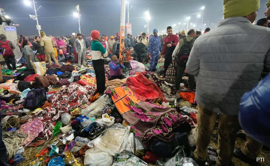 மகா கும்பமேளாவின் பரந்த மைதானத்தில் கிழிந்த செருப்புகள், ஆடைகள், தண்ணீர் பாட்டில்கள், கூட்ட நெரிசலில் சிக்கியவர்களின் தனிப்பட்ட உடைமைகள் என்று நிரம்பி கிடக்கின்றன. காவல்துறையினர் மனிதச் சங்கிலிகளை அமைத்து, ஒலிபெருக்கிகள் மூலம் உத்தரவுகளை முழக்கமிட்டனர், ஒழுங்கை நிலைநாட்ட முயன்றனர்.