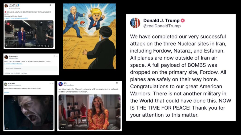 ஞாயிற்றுக்கிழமை அதிகாலையில் அமெரிக்கா மூன்று ஈரானிய அணுசக்தி நிலையங்கள் – ஃபோர்டோ, நடான்ஸ் மற்றும் இஸ்ஃபஹான் மீது துல்லியமான தாக்குதலை நடத்திய பிறகு, சமூக ஊடகங்கள் மூன்றாம் உலகப் போர் WW3 மீம்ஸ்களால் நிரம்பி வழிகின்றன. பல உலகத் தலைவர்களும் பாதுகாப்பு நிபுணர்களும் பரந்த புவிசார் அரசியல் தாக்கத்தை கண்டனம் செய்யும் இந்த நேரத்தில், மக்கள் சமூக ஊடகங்களில் நகைச்சுவையில் தங்கள் கவலைகளைக் கூறத் தொடங்கியுள்ளனர்.